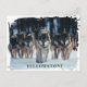 This postcard is shown with a photo print of a wolf pack in the forest of Yellowstone National Park.