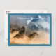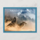Postcard is shown with an art print of wolves in Yellowstone National Park.