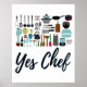 Yes Chef Kitchen Art Poster. Digital download, print or email. Personalize with text, Available in various sizes framed or unframed.