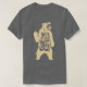 My 11 yo wore adult XL (5’7” 165#). The 8yo is small framed. She wore adult small and tied it in the back. Grandma wore adult large with long sleeve shirt underneath. Tall girl adult medium. Dark haired male adult large. Good quality dark Heather gray, Gildan brand shirt. -it was next up from basic choice and cost about $20 per shirt. Not too thick or thin. Washed and dried well, no major shrinkage. Not see-through. Can wear a bra under it fine. Screen print is just as shown and well done, front and back.