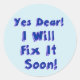 Yes Dear I Will Fix It Soon Procrastination Week Classic Round Sticker