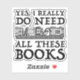 Yes, I Really Do Need All These Books. Funny book lover accessory is a great gift for someone who loves books, reading, libraries, book shops and book stores. Perfect for a librarian, book nerd or bibliophile. Are you a bookaholic? Do you love to read literature and novels in a library or a used book store? Are you an insatiable reader? If you're a geek about books, this funny book quote design is for you!