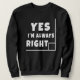Yes I'm Always Right Geometry Teacher Math Themed Sweatshirt