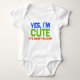 The cutest baby on the block deserves one of these baby outfits printed with the phrase "Yes, I'm cute. It's okay to look." The text design features bold colorful lettering that's suitable for both girls and boys.