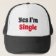 Make your relationship status clear with the message 'Yes I'm Single'. The word single is in red text on a white background. Other text is black.