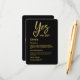 This elegant black and gold wedding design features the phrase “Yes we do!” with the word “Yes” written in a romantic gold script — the sweeping Y cleverly incorporates a heart shape, symbolizing love and unity. The minimal chic layout combines bold modern typography with timeless gold accents, creating a luxurious look perfect for formal events, black tie celebrations, or evening weddings. The names are displayed in graceful calligraphy, adding a touch of personal charm to this sophisticated stationery.