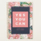 Cute motivational quote planner for women. Inspirational quote that says "Yes You Can". Surrounded by watercolor florals on a navy blue background. Personalize this custom design with your own name, text, and year.