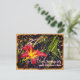 A slightly vintage looking photograph of a red and yellow day lily with drops of water on the petals and leaves. Customize the text if your wish.
