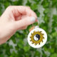 Yin yang symbol is encased in a braided ring with sun flares. This very uniques yin yang design makes a thought provoking gift.