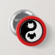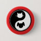 An atypical yin yang symbol inside a red circle, with a cat and dog engaged in the endless chase.