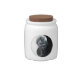 The design on this Candy Jar is a blue chinese dragon backed by a black and white Yin Yang symbol. A small amount of smoke rises from the base of the Yin Yang emblem. This celestial creature, the Chinese dragon is strong, adventurous and outgoing. It's energy is typically yang.