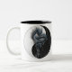 The design on this Mug is a blue chinese dragon backed by a black and white Yin Yang symbol. A small amount of smoke rises from the base of the Yin Yang emblem. This celestial creature, the Chinese dragon is strong, adventurous and outgoing. It's energy is typically yang.