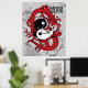 Yin yang Chinese symbol and dragon poster print that features a dragon holding the yin yang 陰陽 symbol and the Chinese character of the yin yang in black, white, red and gray.