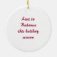 Lightweight, smooth, pure white ornament with nice sheen. Perfect size to be seen from across the room ... and to attract closer inspection! Price was great for ordering enough for the whole family! Clear, bold black design just as requested. Matches the order exactly. Just so nice!