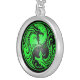 Yin Yang Dragons, green and black Silver Plated Necklace