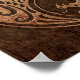 This stunning yin yang design features two stylized tribal dragons. Intricate lines and swirls decorate both sides of this traditional symbol creating a beautiful pattern. The two dragons flow from the bottom of the teardrop and have their mouths wide open in an aggressive stance. Rough textures and natural colors gives the pattern the look of being carved out of aged wood. This unique yin yang makes a stylish sticker design.