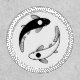 One black and one white koi fish circling each other, creating a stylized Yin Yang sign. In Chinese philosophy, yin and yang describes how opposite or contrary forces are actually complementary, interconnected, and interdependent in the natural world, and how they give rise to each other as they interrelate to one another.