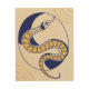 Wood wall art ukuran 8"x10" dengan ilustrasi vektor minimal seekor ular yang membentuk simbol yin-yang. Desain simetris dengan garis bersih dan palet warna biru tua, kuning keemasan, serta krem. Cocok untuk dekor interior modern, ruang kerja, studio, atau sebagai aksen dinding bertema abstrak dan zodiak.