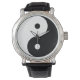 Black Vintage Leather Watch with the picture of a yin yang on the face. The is a customizable watch. Any text or image can be added.