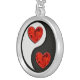 Yin Yang with red burning hearts Silver Plated Necklace