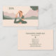 A business card with a silhouette of a woman in the king pigeon pose, a landscape in the background and customizable information, all in pastel tones. Perfect for activities such as yoga instructor or teacher, meditation, relaxation or wellness center, therapist, etc.
