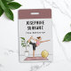 Destei's yoga theme illustration of a woman doing the Dancer Pose / Natarajasana. The woman is standing on one leg while her other leg reaches upwards and connects with one of her hands. The woman's other hand is pointing forward as she balances herself. The woman is wearing a pink color tank top and dark gray capri type leggings that expose her calves and toes. The woman's brown hair is tied on a bun behind her head with a brown color hair tie. The woman is standing on a pinkish color yoga mat. There is a green leafy plant and a round yellow color exercise ball next to the woman as well. There are also two personalizable text areas ideal for a custom name and profession such as a yoga instructor, for example.
