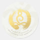 Yoga Studio Meditation Instructor / Life Coach / Healer / Reiki Master / Massage Therapy Sticker Template - Elegant Calligraphy Faux Gold Foil Yoga Meditation Easy Pose / Sukhasana Pose with ZEN Symbol on OM Symbol White Paper Background.