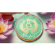 Yoga Studio Meditation Instructor / Life Coach / Healer / Reiki Master / Massage Therapy Keychain Template - Elegant Calligraphy Faux Gold Foil Yoga Meditation Easy Pose / Sukhasana Pose with ZEN Symbol and OM Symbol on Green Gold Foil Texture Background.