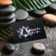 Modern Yoga Fitness Studio / Meditation Instructor / Personal Trainer / Life Coach / Healer / Reiki Master / Massage Therapy Gift Certificate Card Template - A woman is seated in Sukhasana, also known as the Easy Pose, which is a common posture for yoga and meditation. She is surrounded by an ethereal, swirling mist that emits a soft glow. The mist forms an abstract, flower-like shape around her. The mist and the flower symbolize her spiritual energy and connection to nature. The lotus flower is a sacred symbol in many religions and cultures, representing purity, enlightenment, rebirth, and beauty. The lotus flower is also connected to yoga and meditation, as it is often used as a seat for deities or a focal point for concentration. The white lotus flower in the image signifies her inner peace and harmony.