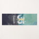 Yoga Studio Meditation Instructor Yoga Mats Template - Elegant Teal Turquoise Watercolor and Faux Gold Foil YOGA Meditation Tree Posture with OM Symbol on Black Grunge Background.
