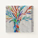 This decorative notebook features a print of a rainbow-colored Tree of Life on a pale gray background.