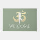 Yoga Studio Meditation Instructor / Life Coach / Healer / Reiki Master / Massage Therapy Welcome Doormat Templates - Modern Yoga Meditation Pose / Tree Pose (Vrksansana) and Faux Gold Foil OM Symbol on Green Color Background.