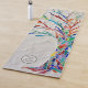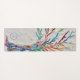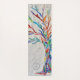 This decorative yoga mat features a print of a rainbow colored tree on a pale gray background.