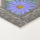 Bring an extra bit of tranquility into your life with a yoga mat containing photos of beautiful blue asters surrounded by borders made from the unique patterns in tree bark.