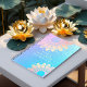 Elegant Faux Rose Gold Foil Floral Lotus Mandala Symbols on Purple Blue Foil Background.