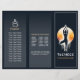 Modern Yoga Fitness Studio / Meditation Instructor / Personal Trainer / Life Coach / Healer / Reiki Master / Massage Therapy Tri-Fold Brochures Template - Modern Yoga Meditation Pose / Tree Pose (Vrksansana) With Full Moon on Dark Blue Color Background.