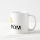 Enjoy a cup of coffee in this yoga mom coffee cup. It includes a yellow lotus flower and a bold, uppercase font.