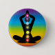 A silhouette of a person sitting in a yoga position, with chakras aligned.