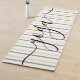 Yoga is written in elegant black script on front. Calming pastel blush pink and sage green stripes against white background. Breathe is written on backside in white typography against green background with double pink geometric stripes. Original Design by TamiraZDesigns.