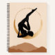 Lightly textured silhouette yoga stretch on a faux foil look gold crescent moon above neutral mountain below. Give your yoga gym or meditation journal a fresh new Zen style. Interior page options include wide rule, college rule, graph, sketch, checklist or bullet and you can also choose the spiral color.