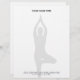 Professional Yoga pose letterhead template design with logo. Elegant typography template for new practice or personal use. Add your own personalized name and address. Custom office supplies and stationery items. Great for yoga instructor, meditation teacher, mindfulness, spiritual store, office, clinic, salon, firm, self employed person, new business owner, corporate event, etc. Grey or custom colors. Blank stationery for printing documents at home or at the office. Matching visit cards available too. Tree pose on one leg.