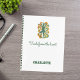 Yoga pose swirls green orange name slogan retro notebook