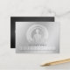 Elegant Faux Silver Foil Yoga Meditation Easy Pose / Sukhasana Pose with ZEN Symbol on Silver Floral Damask Background.