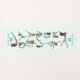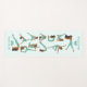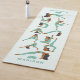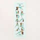 This design features yoga positions in brown and light green on a light blue background and customizable name.