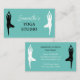 Yoga Studio business card template with pose logo. Customizable colors. Teal example. Professional layout with modern typography. Customizable colors and typography. Ideal for yoga teacher, pilates instructor, personal trainer, sports coach, gym trainer, meditation, mindfulness, spiritual teachings, healer, beauty salon and more. Create standard visit cards for self employed person, starting boss, employees, co workers, partners, manager, friends, family, customers, guests etc. Add your own unique address information and job title. Double sided print. Custom office supplies for beginning a new company. Choose from different paper qualities, thickness and styles. Printing with glossy or matte finish. Change quantity to get the cheap low bulk pack prices. Calm tree pose silhouette.