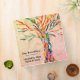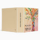 This binder is decorated with a print of a rainbow colored tree on a soft beige and coral background.