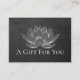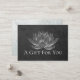 Yoga Studio Meditation Instructor / Life Coach / Healer / Reiki Master / Massage Therapy Gift Certificate Card Template - Modern Elegant White Lotus on Black Grunge Background.