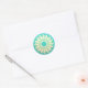 YOGA Studio Meditation Instructor Sticker Template - Elegant Faux Gold Foil Floral Mandala Symbols on Teal Green and Turquoise Blue Background.