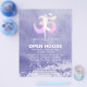 Yoga Studio Meditation Instructor / Life Coach / Healer / Reiki Master / Massage Therapy Open House Flyer Template - Elegant Rose Gold Watercolor Yoga Meditation Pose / Tree Pose / Vrksasana Pose and Om Symbol on Purple Grunge Background with Water Splash.