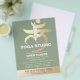 YOGA Meditation Instructor Studio Open House Flyer Template - Elegant Faux Gold Foil Yoga Meditation Magical Root Chakra Symbol / Muladhara Chakra Symbol / Seed Mantra LAM Sanskrit Letter with Meditation Pose / Tree Pose on Green Color Background.